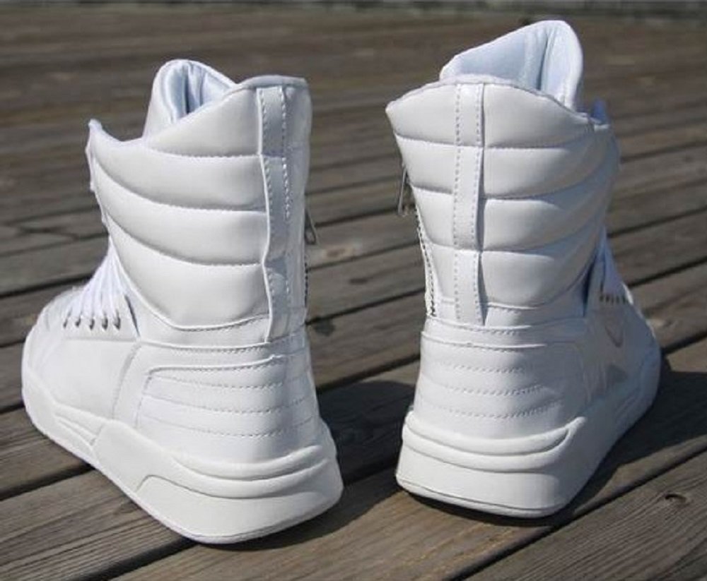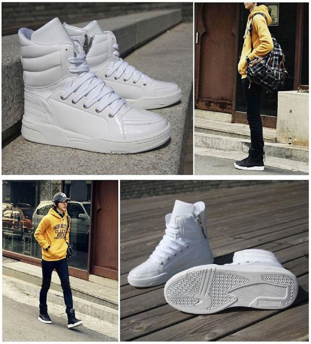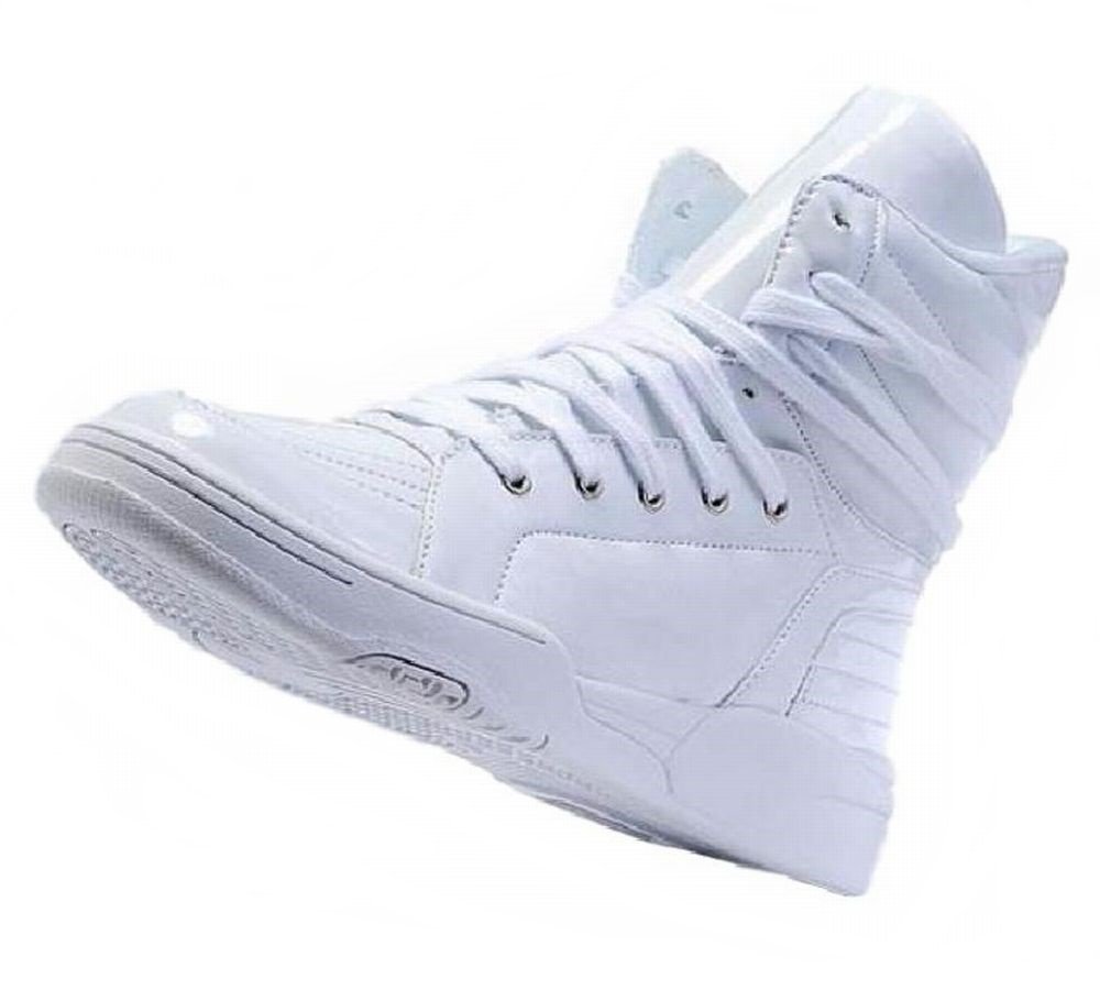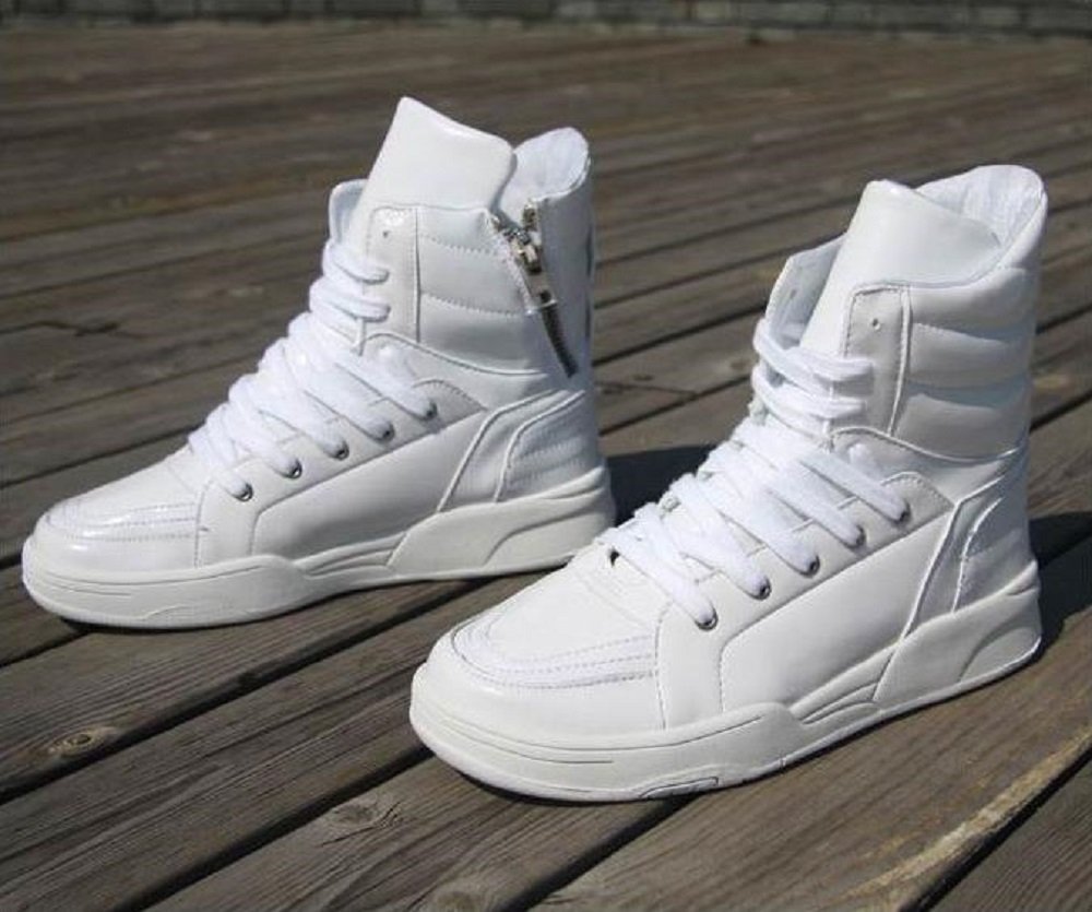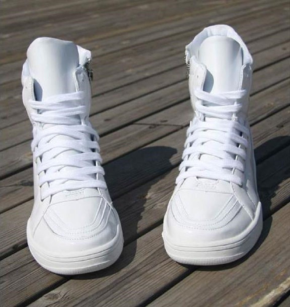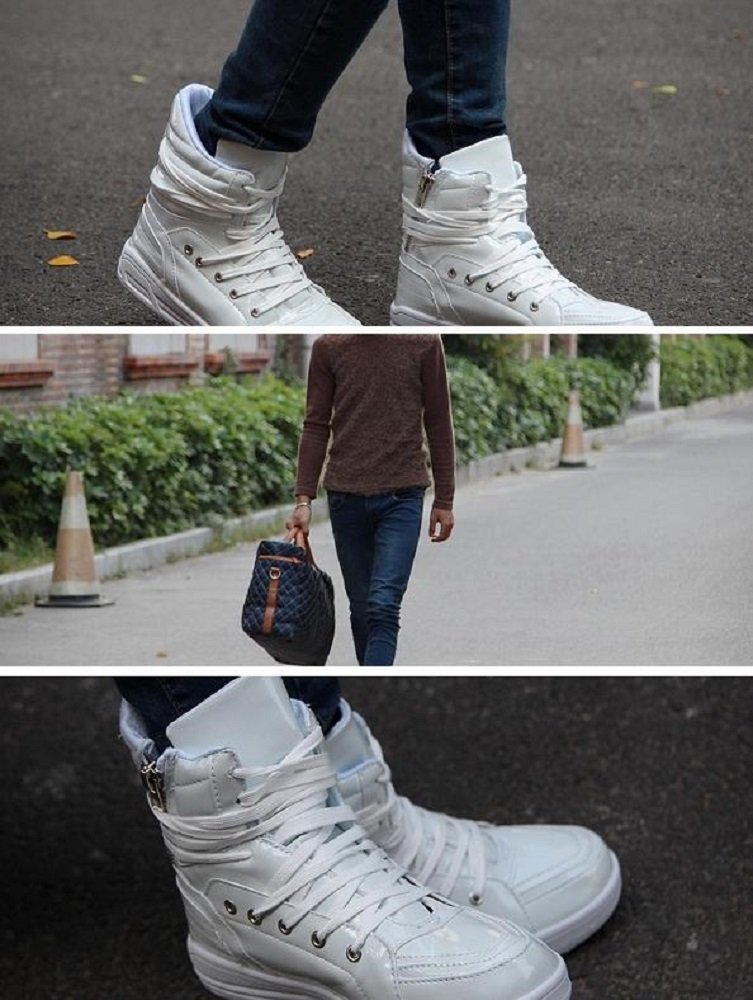 Coarse volume high-cut sneakers with reasonable glossy enamel material fashionable classic casual style accents.