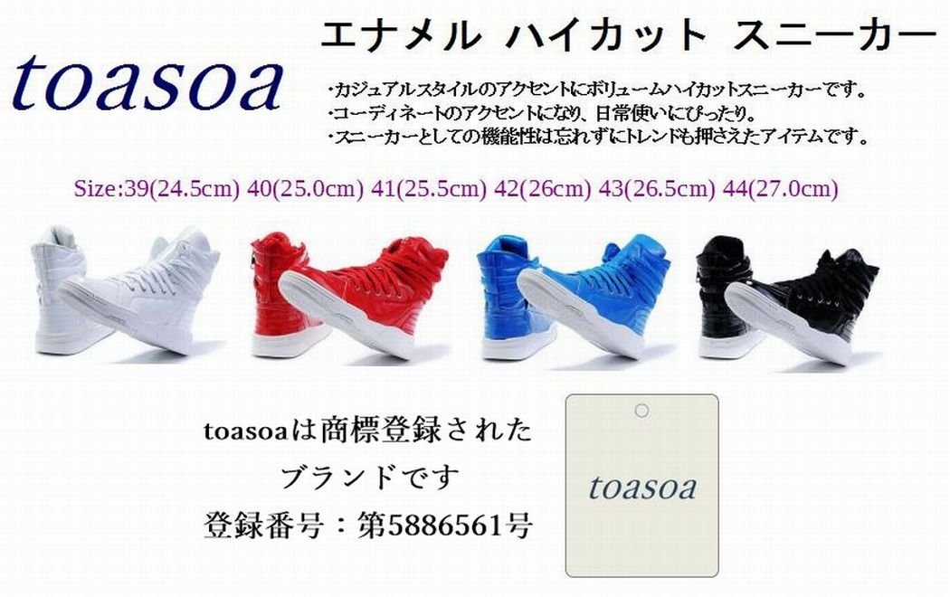 (Tora Asa) toasoa enamel high cut sneaker lace upside zip men's
