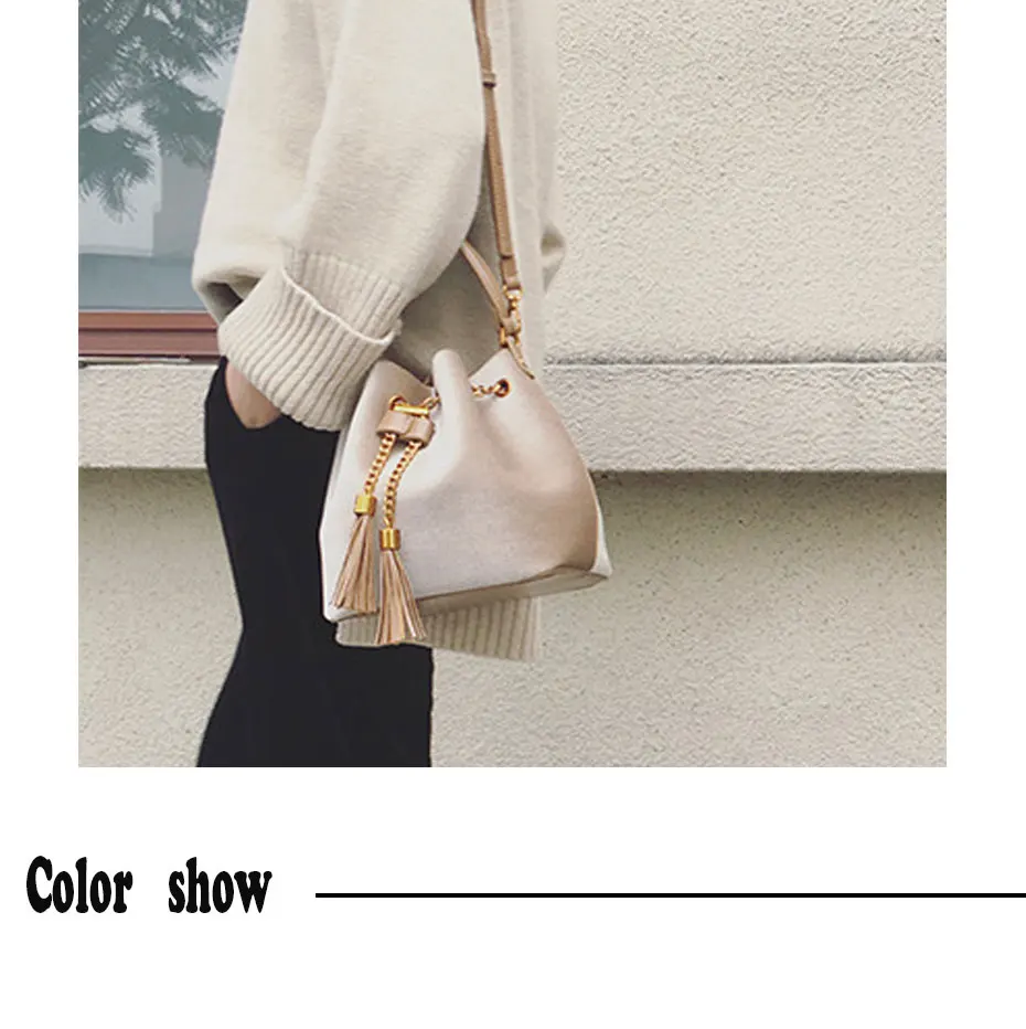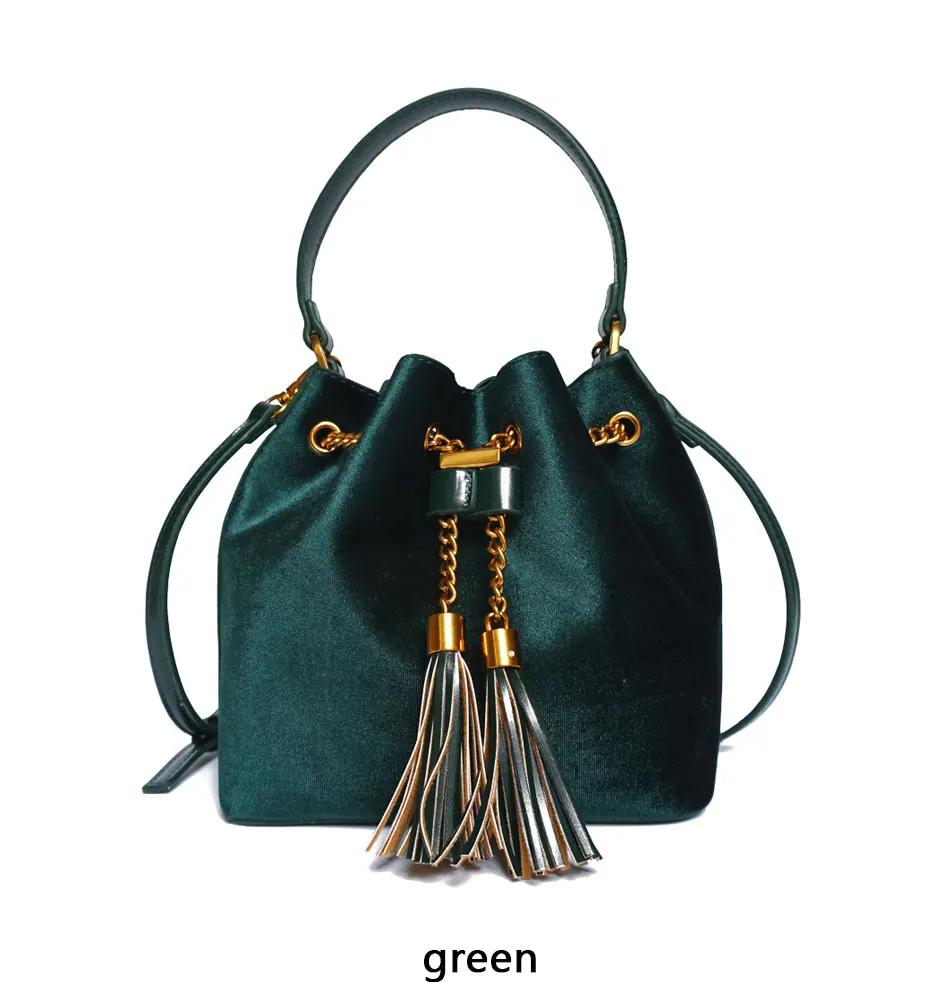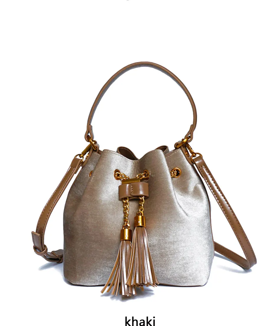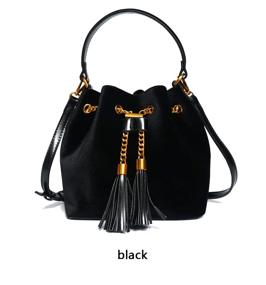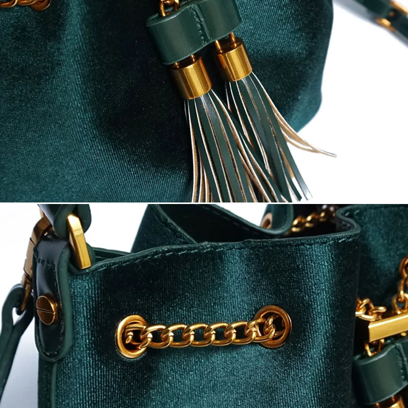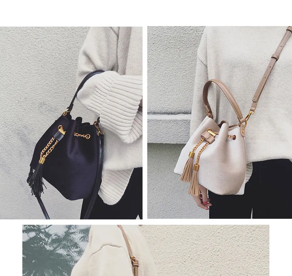 Feature:Drawstring Chain PU Leather Velvet Shoulder Bag Handbag With Tassel