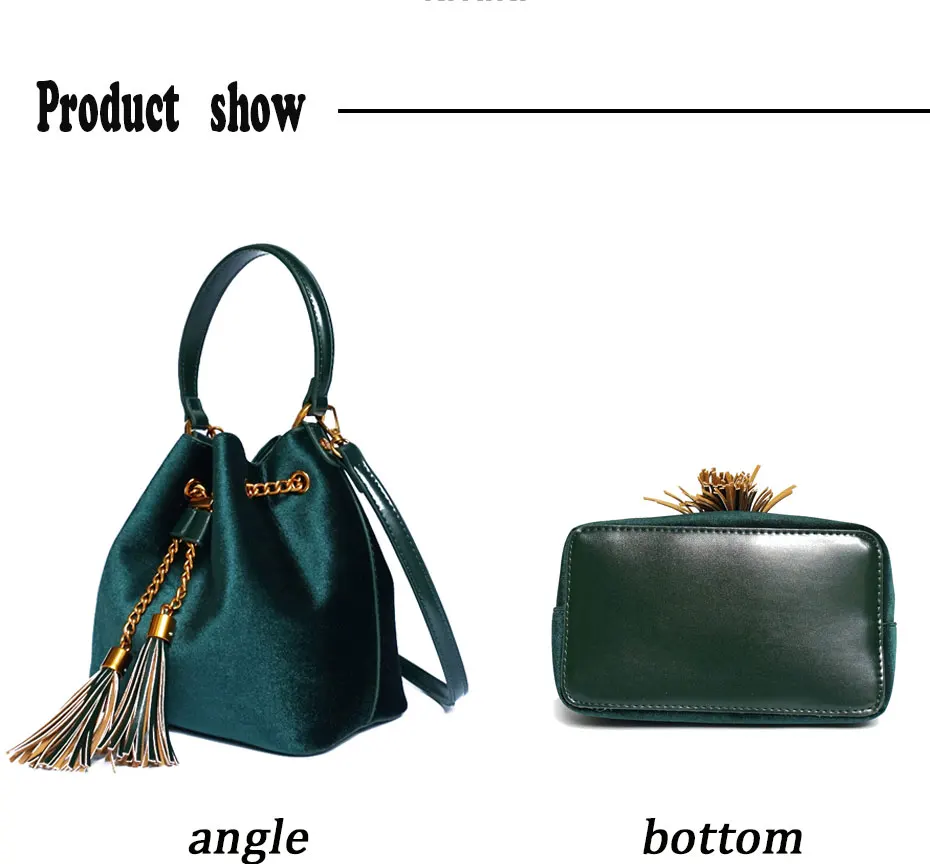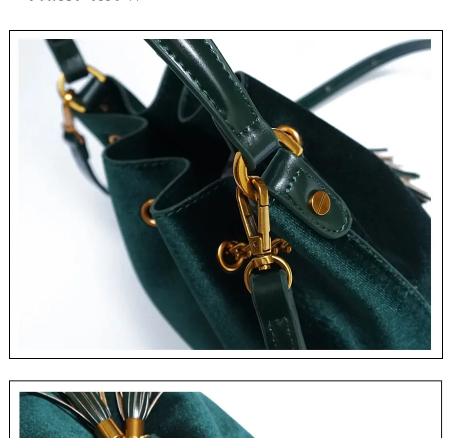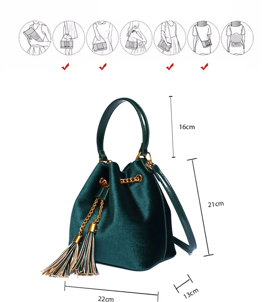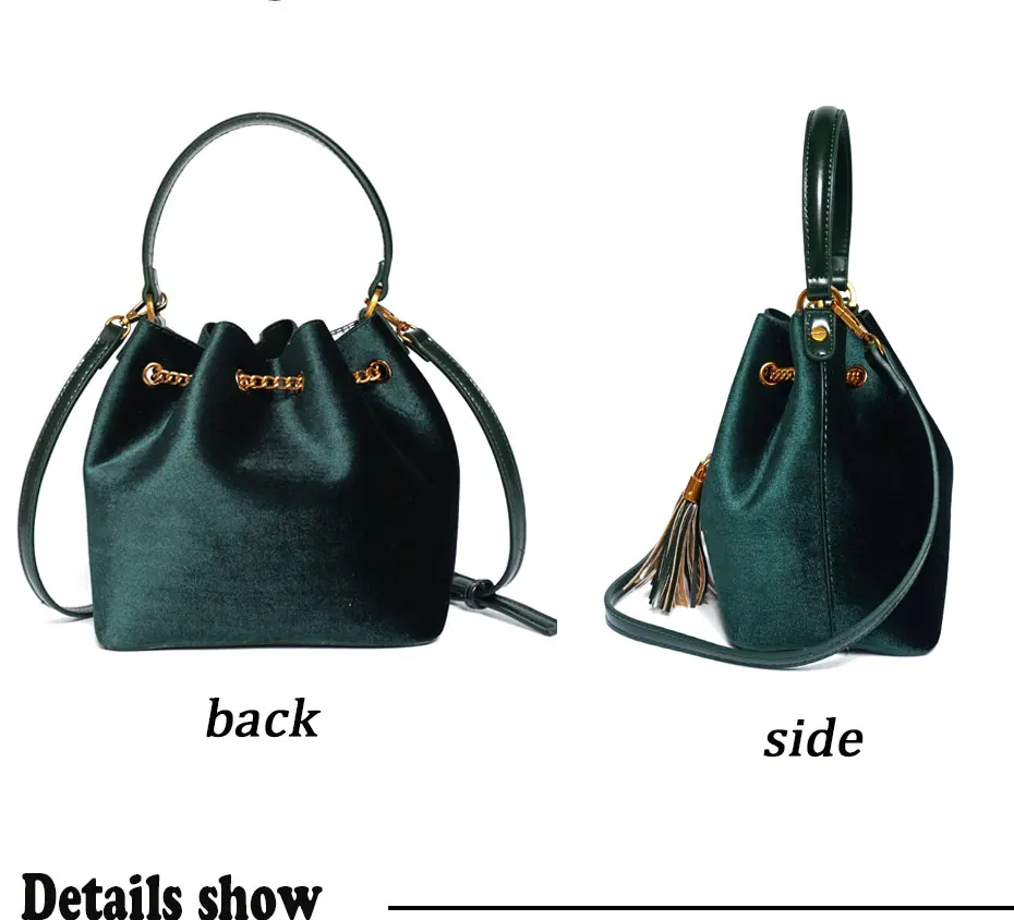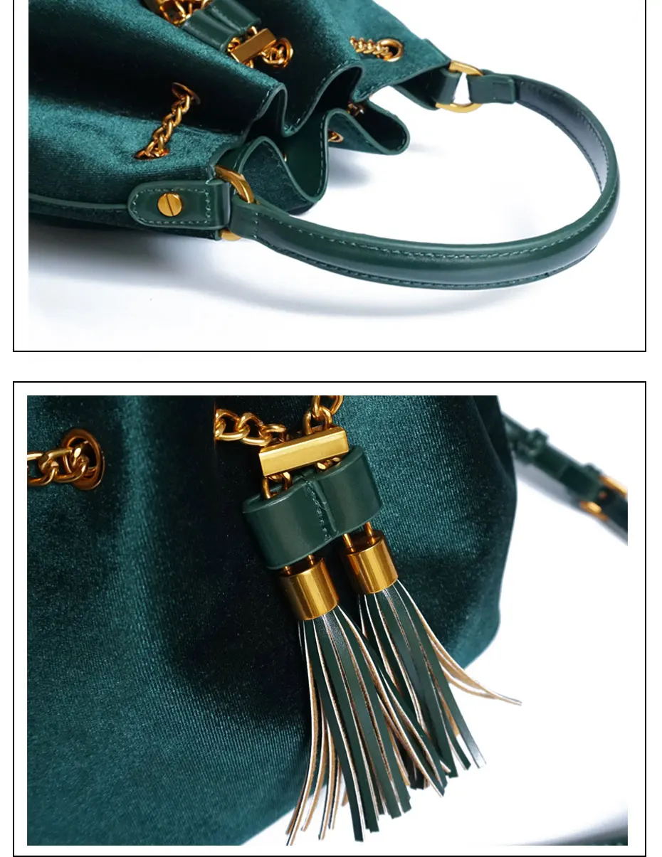 Feature:Drawstring Chain PU Leather Velvet Shoulder Bag Handbag With Tassel
