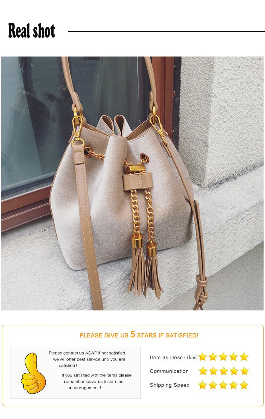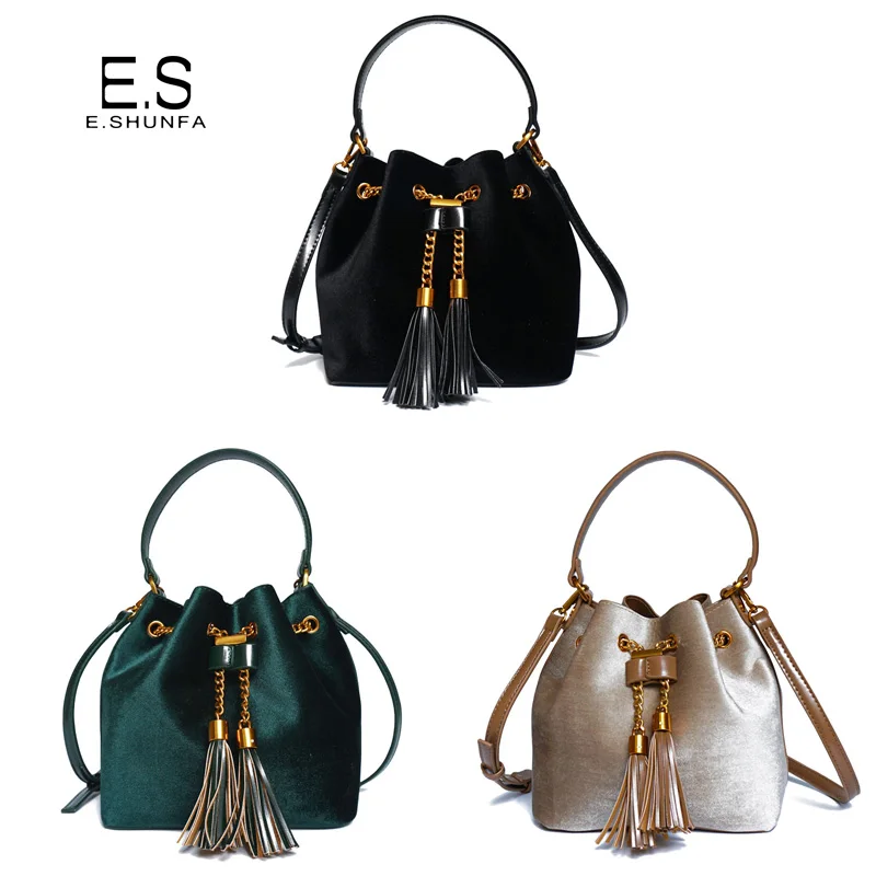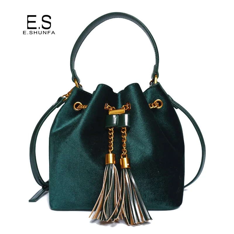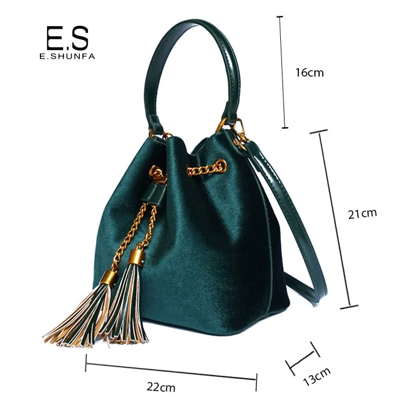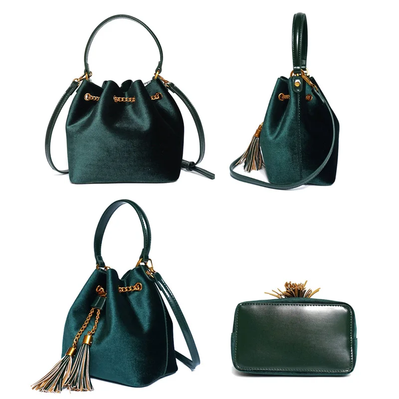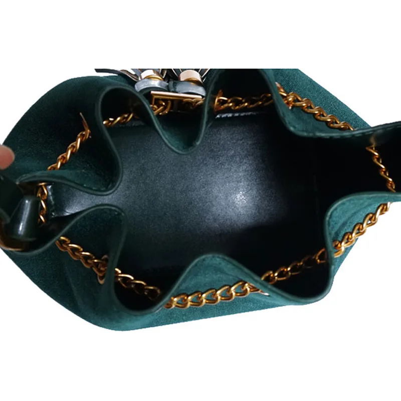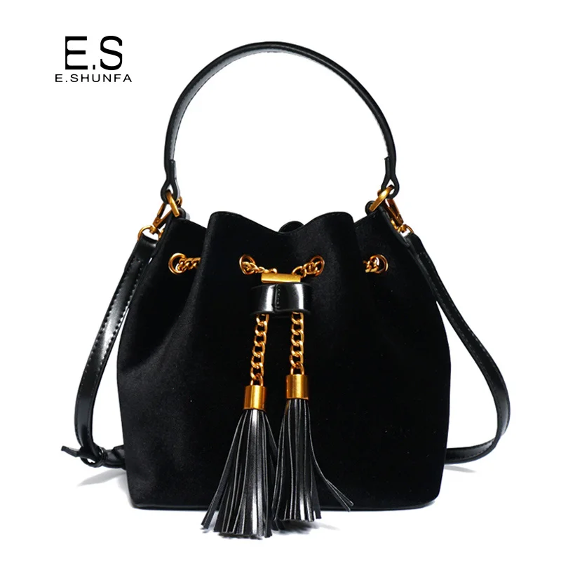 Feature:Drawstring Chain PU Leather Velvet Shoulder Bag Handbag With Tassel