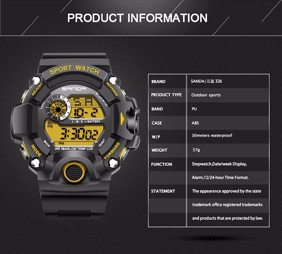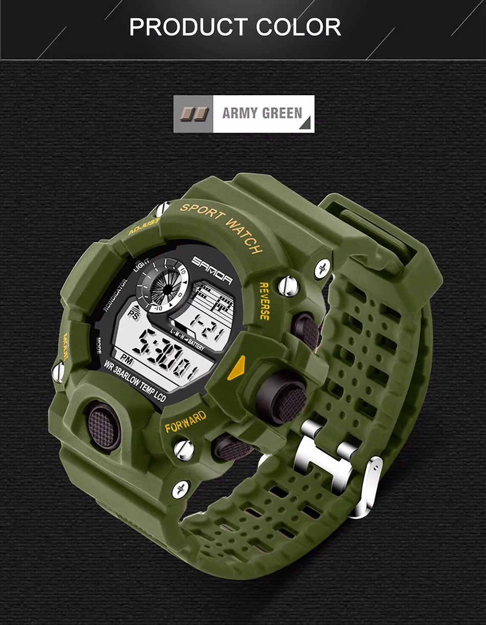 Feature:Back Light,Water Resistant,Shock Resistant,Stop Watch,Complete Calendar,Luminous,Chronograph,Auto Date,LED display