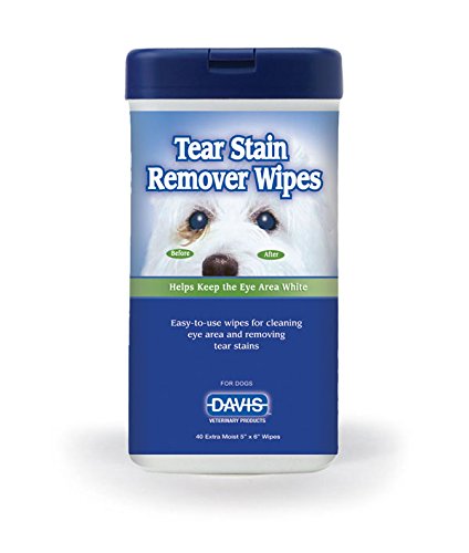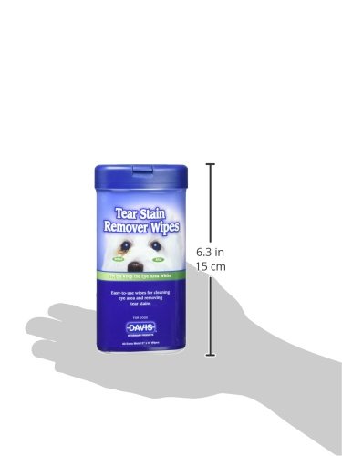 Davis tear stain Remover wipes help remove unsightly Red stains around the eyes and prevent the reoccurrence of stains. Used daily, These convenient pre-moistened wipes assist in keeping the eye area bright and White for an attractive clean appearance. Efficiently handles beard stains on the coat. Great for dogs on the show circuit, Davis tear stain Remover wipes are an essential tool for a First place look.Feature