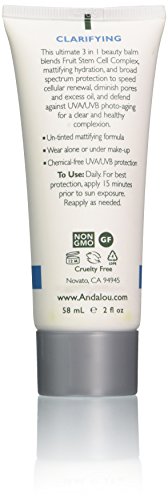 -. Binding : Misc. -. Brand : Andalou Naturals -. EAN : 0794866391784 -. Feature : Andalou Naturals / Personal Care / Facial Care -. IsAdultProduct : 0 -. Label : Andalou Naturals -. LegalDisclaimer : Actual product packaging and materials may contain more and different information than what is shown on our website. We recommend that you do not rely solely on the information presented and that you always read labels, warnings, and directions before using or consuming a product. Please see our full disclaimer below. -. Manufacturer : Andalou Naturals -. MPN : 1162775 -. NumberOfItems : 1 -. PackageQuantity : 1 -. PartNumber : 1162775 -. ProductGroup : Beauty -. ProductTypeName : BEAUTY -. Publisher : Andalou Naturals -. Size : 2 FZ -. Studio : Andalou Naturals -. Title : Andalou Naturals Clarifying Oil Control Beauty Balm Un-tinted with Spf30 - 2 Fl Oz -. UPC : 859975002539