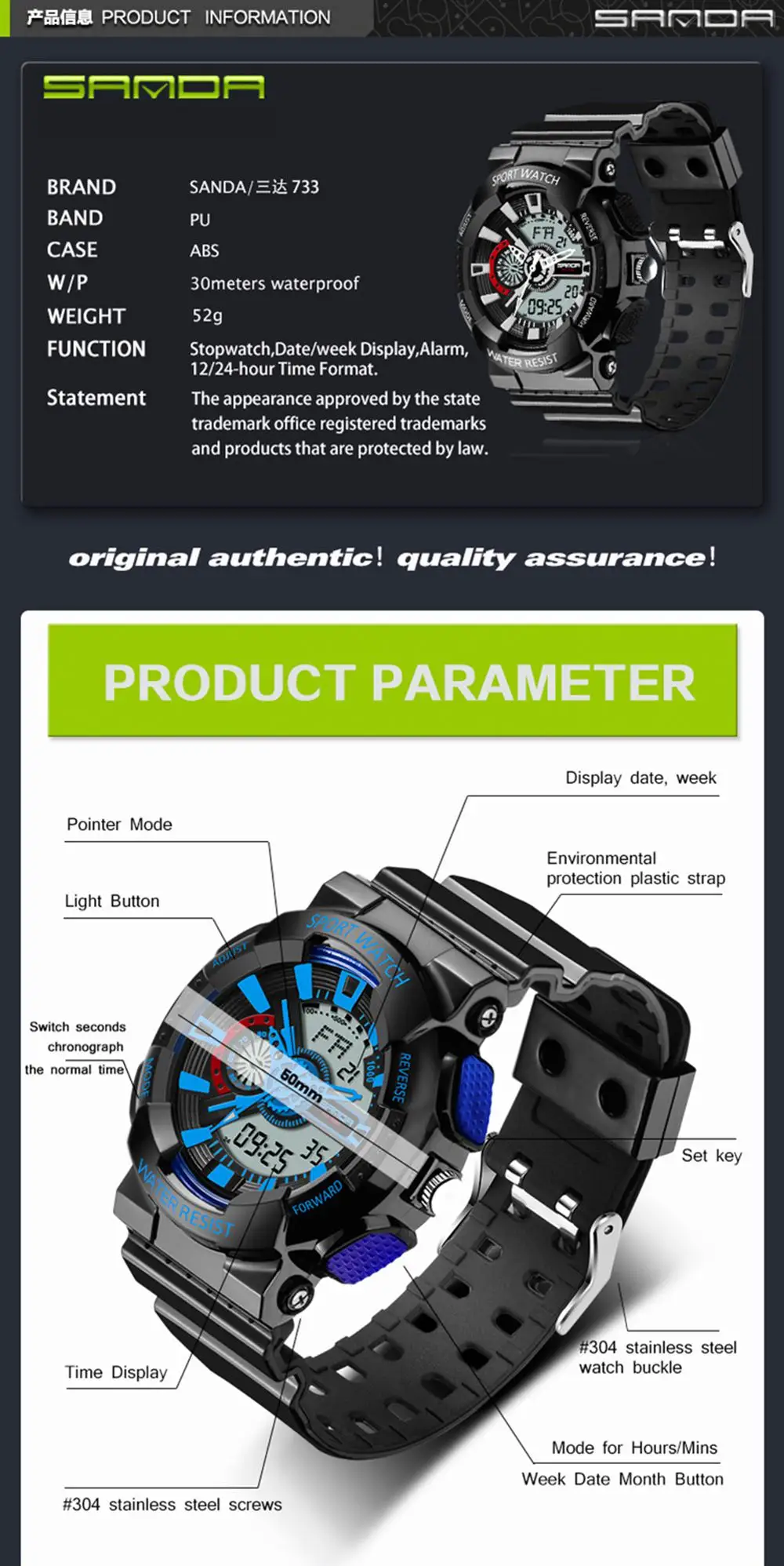 Item Type:Dual Display Wristwatches,Quartz Wristwatches