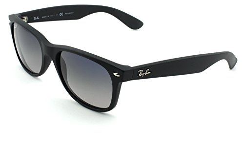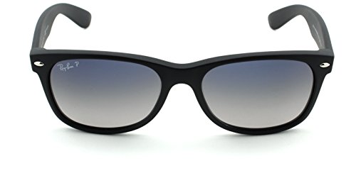 Ray-Ban RB2132 New Wayfarer Unisex Square Sunglasses (Matte Black Frame/Polarized Blue Gradeint Grey Lens 601S78, 55)
