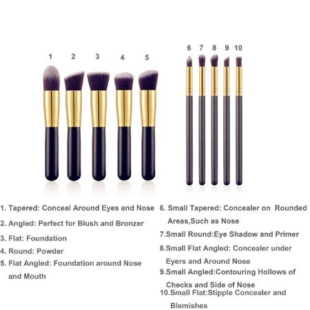 - Title : HOSL 10PCS Premium Synthetic Hair Makeup Brush Set Cosmetics Foundation Blending Blush Face Powder Brush Makeup Brush Kit (Golden and Black)
