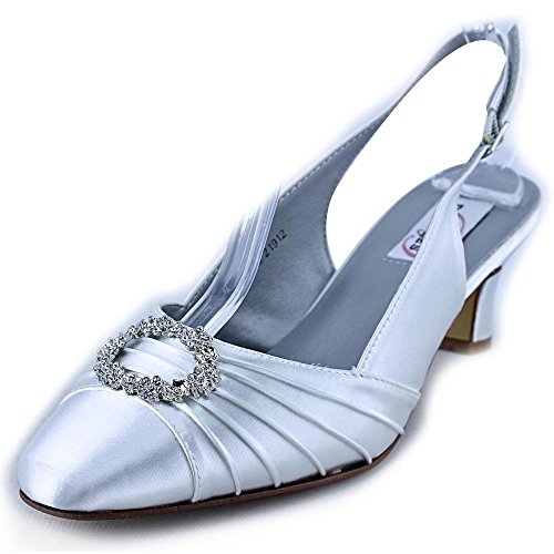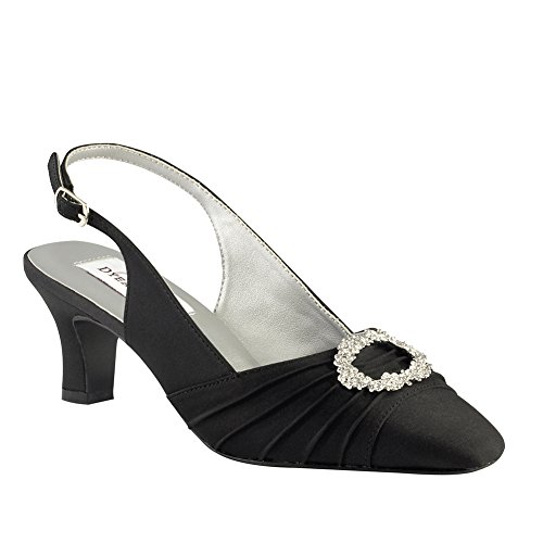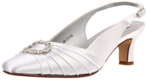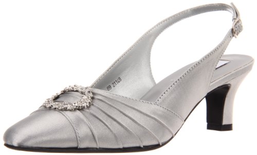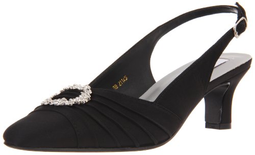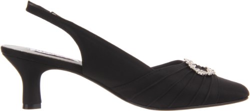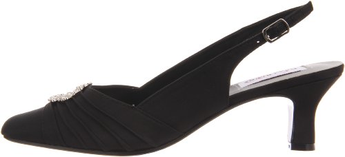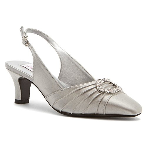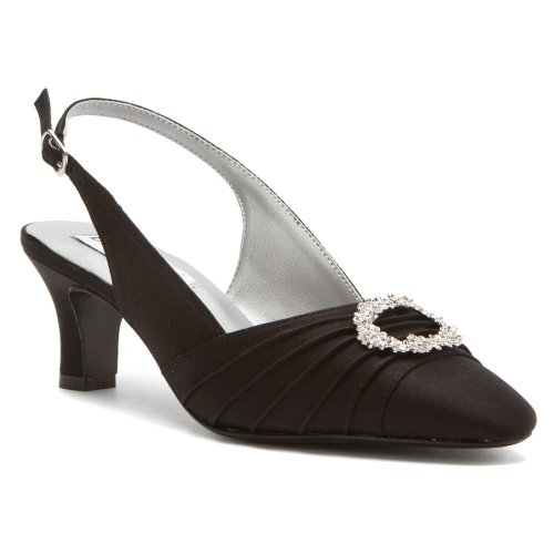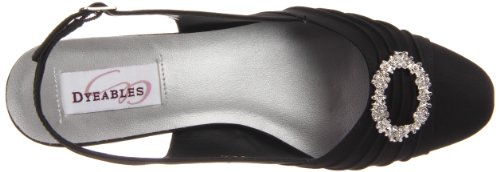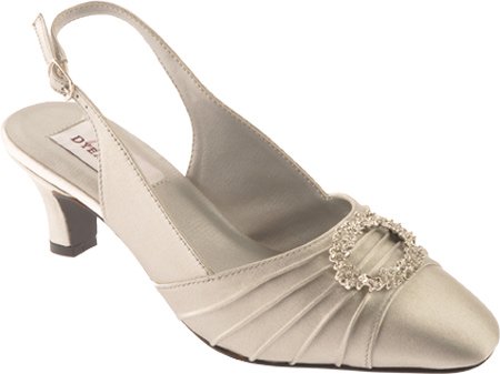 Walk, greet and dance comfortably in elegance and grace wearing the Dyeables Ann slingback pump. This flattering-to-all women's dress pump features a closed-toe, dyeable satin upper with a pleated vamp and circle ornament, as well as an adjustable, slingback strap with buckle closure for a customized fit. With the comfort of a low heel, lightly cushioned footbed and smooth, faux leather lining, you'll be good through the last dance or photo in the Dyeables Ann pump.Feature