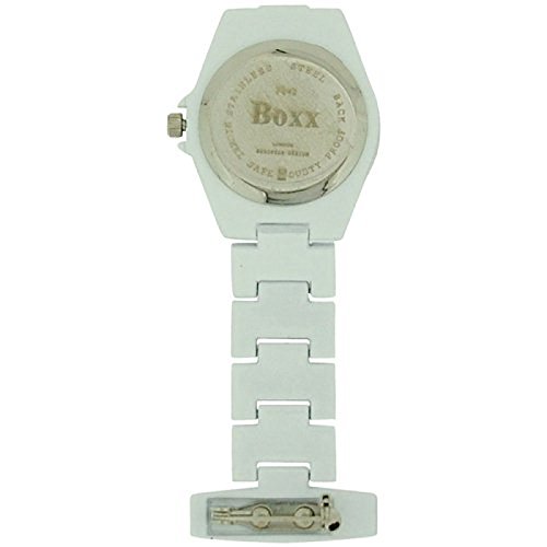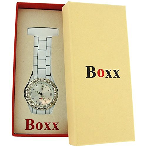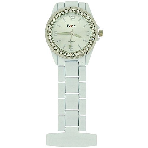 -. Title : Boxx Ladies White Enamel Stone Set Bezel Nurses/Beauticians Fob Watch BOXX12