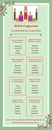 - Zoha Amber Bloom is a luxurious and fresh fragrance that will melt on your skin with warm, floral base notes and hints of vanilla. The amber has an aroma of sophistication and golden luxury.