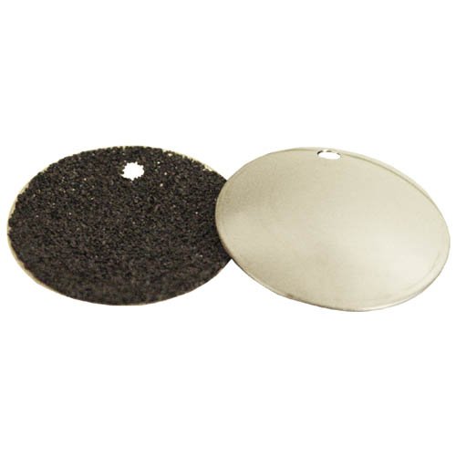 These scuffers measure almost 2" in diameter. They are dish-shaped, and are lined with a coarse abrasive material. Hold it in the palm of your hand, and shape your tip for better playability, or scuff it for better chalk retention. The round metal scuffer has a convenient hole to allow it to easily go on a key chain or to be attached to your case.