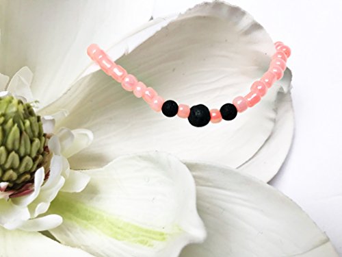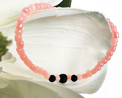 Magnolia Blue Handmade Diffuser Aromatherapy Bracelet For Essential Oils With Minimalist Lava Bead (7.5", Summer Coral)