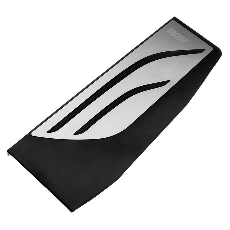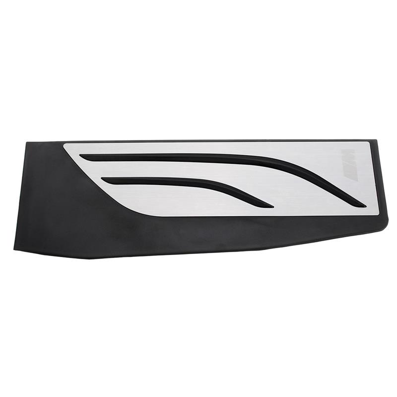 The Performance Stainless Steel Pedal Covers match the new design of the M footrest make a striking addition to the foot well. The asymmetric, three dimensional design of the rubber sections gives the foot well a truly dynamic feel. The pronounced rubber profiles of the brake and gas pedals offer good grip and protect against slipping.