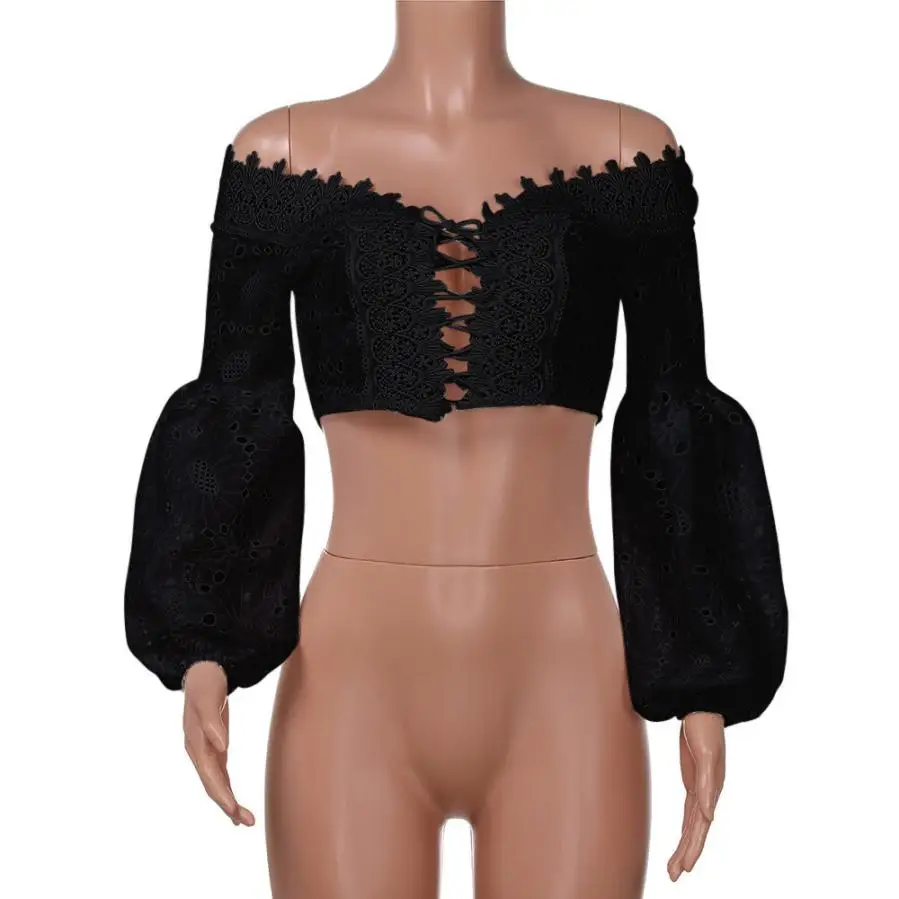 Model Number:Lady's Shoulder Lace Hollow Lace Long Sleeve Top