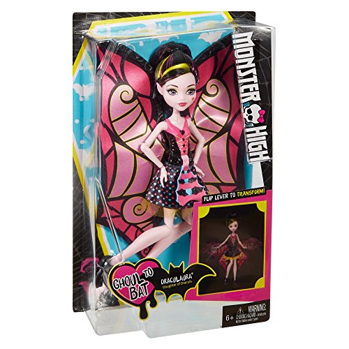 The Monster High dolls can go from girl to ghoul and back again! Draculaura doll has an easy, child-activated mechanism that creates an instant transformation. With a simple move, the 12-inch doll’s skirt opens up into wings with a colorful, web-inspired design. Draculaura doll incorporates touches inspired by her personal style and monster legacy as the daughter of Dracula for monsteriffic fun.Feature