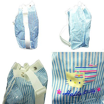 Studio : Matsuo textile industry Publisher : Matsuo textile industry Binding : Office Product Product Description Hello Kitty Hello Kitty Bonn sack of the Summer Bonn sack BL refreshing stripes! Light and durable plastic material Bonsakku is, everyday use, of course, also to the sea and swimming pool, is very convenient! ! * Size: length of about 40cm x around about 60cm x width of about 20cm ? Possession of a length of about 55cm adjustable * color: (BL) * Made in China * Publisher: Matsuo Textile Industry Co., Ltd. (Japan) 0