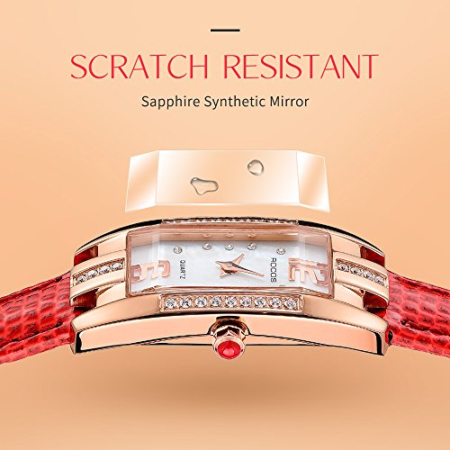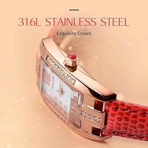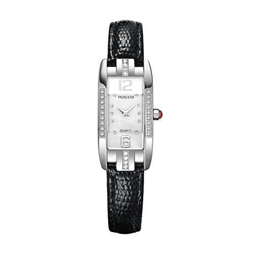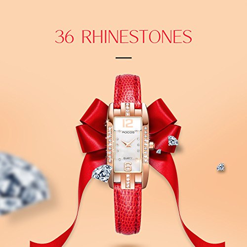 【FEATURES】 Elegant square watch featuring mother-of-pearl dial with 36 rhinestones and arabic numerals markers