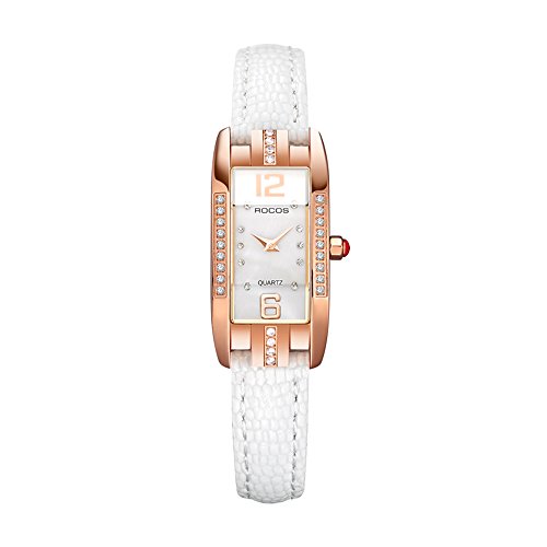 2. Elegant square watch featuring white dial with 36 rhinestones and arabic numerals markers.