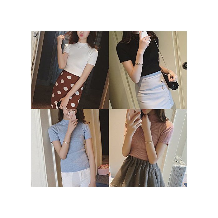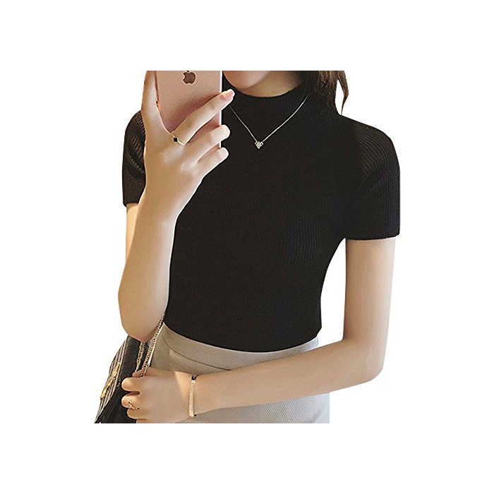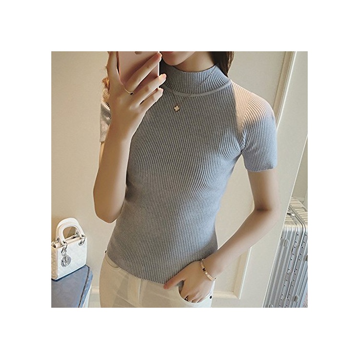 원본상품명: [モノジ] MONOZY レディス 半袖 リブニット ハイネック ニット トップス