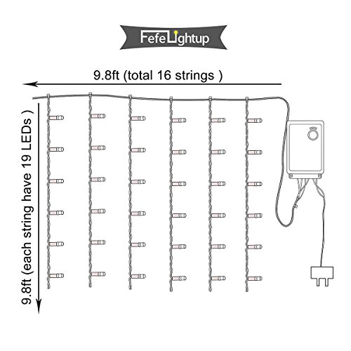 FEFELightup Window Curtain Lights 9.8×9.8ft 300 LEDs Night Lights