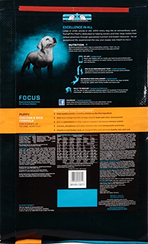-. Binding : Misc. -. Brand : Purina Pro Plan -. Feature : Specially formulated food for puppies to grow healthy and strong / High quality chicken is the first ingredient in this puppy food / DHA from fish oil helps nourish brain and vision development -. Label : Purina Pro Plan -. Manufacturer : Purina Pro Plan -. MPN : 13271 -. PackageQuantity : 1 -. PartNumber : 13271 -. ProductGroup : Pet Products -. ProductTypeName : PET_SUPPLIES -. Publisher : Purina Pro Plan -. Studio : Purina Pro Plan -. Title : Purina Pro Plan Focus Puppy Dry Dog Food