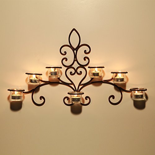 - Title : Adeco Iron and Glass Horizontal Wall Hanging Candle Holder Sconce, Scolled Vine Detail, Holds 7 Tea Lights