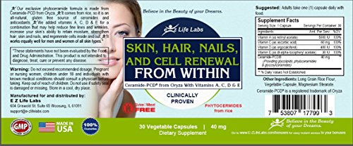 -. Feature : Premium Gluten Free Phytoceramides 30 Capsules-Pamper your Face, Skin, Hair, and Nails / No Worries, No Stress, No Needles- 100% E-Z Life Labs Guarantee / Amp Up Your Success with our Free Bonuses- For Your Health-For Your Beauty / Confidence in a Bottle- All Natural Face Lift -Hydrate and Moisturize from the Inside Out