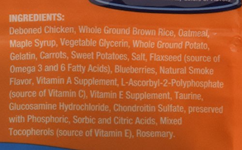-. Binding : Misc. -. Brand : Blue Buffalo -. Feature : Made in the USA / Super delicious meaty and moist dog treat / Specially formulated to help support your dog's healthy joints, heart, and immune system / Glucosamine & Chondroitin- for help promote healthy joints / Taurine- to help support heart health -. Label : Blue Buffalo -. Manufacturer : Blue Buffalo -. PackageQuantity : 1 -. ProductGroup : Pet Products -. ProductTypeName : PET_SUPPLIES -. Publisher : Blue Buffalo -. Studio : Blue Buffalo -. Title : BLUE Bites Soft-Moist Dog Treats