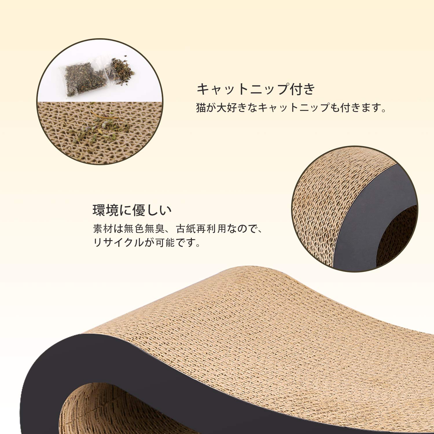 【環境に優しい】素材は無色無臭、古紙再利用なので、リサイクルが可能!環境にも優しい爪とぎです。猫との暮らしを素敵に彩るインテリアスタイルで、どんな部屋にもフィットしてくれます。