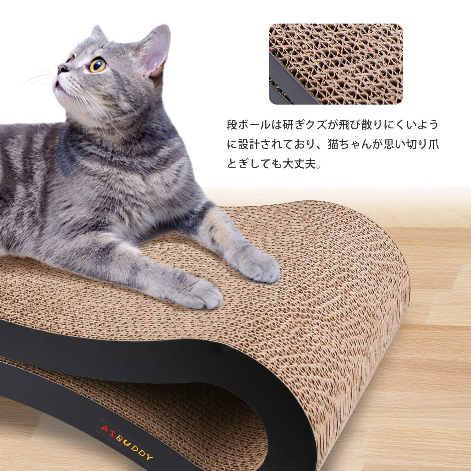 【硬めで長持ち】素材は高密度な段ボールを採用しており、複数の猫が乗っても壊れることはありません。爪とぎを裏返して両面使用もできますので、コスパが更に良くなります。