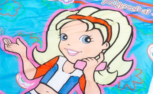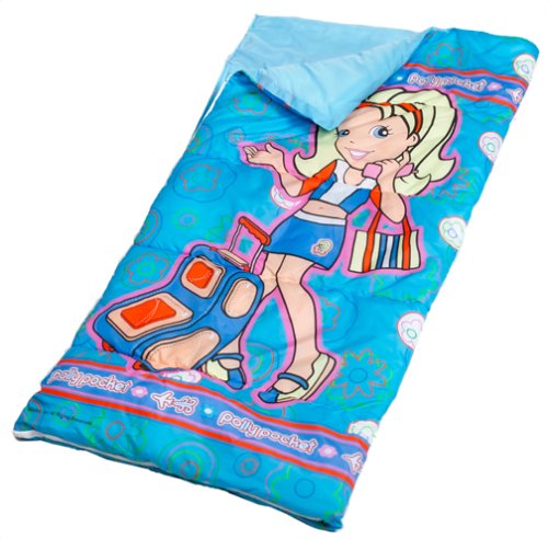 Binding : Baby Product Product Description Sleep with Polly Pocket tonight. This indoor slumber bag is great for sleepovers, nap time, and travel?or unzip fully and use as a comforter for a twin-size bed. Bag is made of printed polyester in soft pastels, with a warm, soft tricot lining, polyester hollow fiber fill, and a self-repairing, non-locking zipper. Machine wash. Made in USA. Open: 57Lx60W". Closed: 57Lx30W". 0