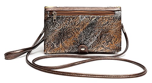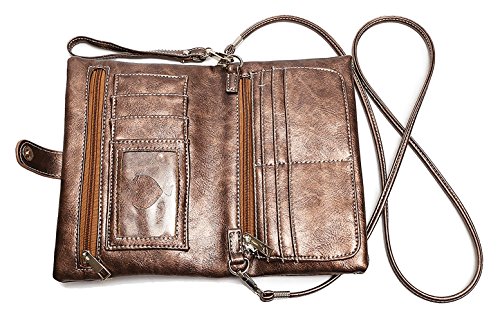 -. Feature : Dimensions: 9 inches x 6 inches x 1.25 inches / Material: Embossed Leather / Zip around closure with detachable wristlet / 12 credit card slots with two roomy interior pockets / Book opening for checkbook