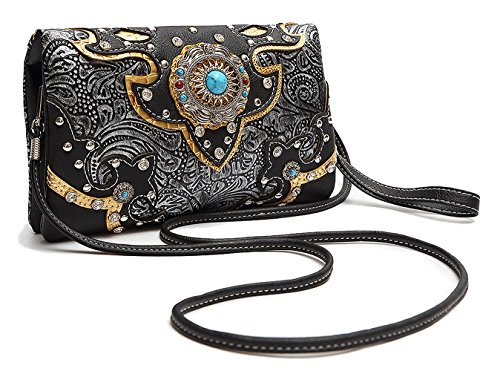 -. Title : Cowgirl Trendy Embellished Zip Around Leather Wristlet Wallet