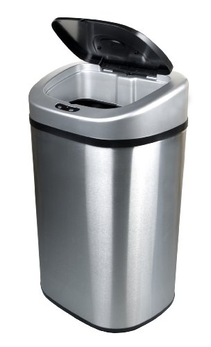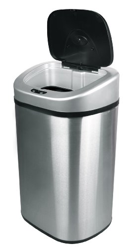 - Feature : Seals odor in and eliminates cross-contamination of germs with touch-free operation / Water resistant infrared motion sensor detects motion within inches of sensor range / Super size capacity with wide opening for more friendly use Sleek design makes your environment a one of kind / Energy saving technology keeps battery life 20% longer / Ships in Certified Frustration-Free Packaging