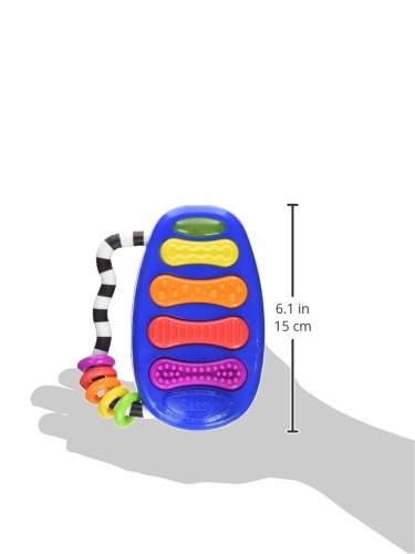 Easy to grasp toy allows baby to feel and push button texture, shake, hold and mouth rings