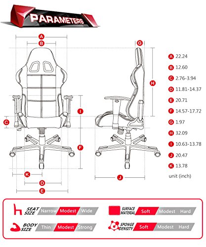 - Feature : Ergonomic design-- more efficiently and comfortably,Free bonus: Armrest, Headrest cushion & Lumbar cushion / Patent race car seat breathable material:Fabric with PU stripe, armrest adjustable / Extra higher backrest to save neck and spinal, Flexible seat back up to 170 degree adjustment / Special soft armrests with adjustment protect shoulders and wrists / Heavy duty base with latest footrests, Latest design