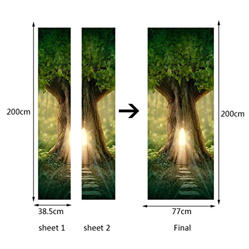 GWELL Creative Door Wall Sticker, Sunlight Tree Forest Door Mural Decals Self-adhesive Waterproof Wallpaper DIY Home Bedroom Decor Poster Decoration 30x79"