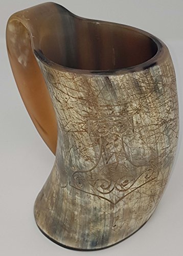 Studio : Sixth Sense Publisher : Sixth Sense Binding : Kitchen Product Description ? Holds 16oz of your favorite Mead, Ale or other Beverage. ? Features a Natural Finish and cut from a solid piece of horn. Sealed with an acrylic based ? Stands 6" tall with a formed 1 piece horn handle ? Sealed with food safe sealant, it's a perfect vessel for Vikings, Game of Thrones or Reined Faire ? Each natural horn is unique and may differ from the design pictured. ? All Drink ware is handcrafted from 100% natural horn that has been shaped as a perfect replica of a medieval style drinking horn. ? The Horn Tankards Are Sealed So That They Are Suitable For Use With Cool Liquids. ? Weight Approximately 370G - 410G. 0