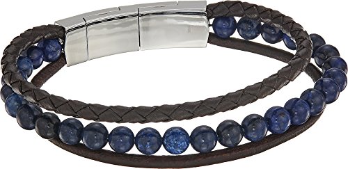 Fossil Mens Casual Multistrand Beaded and Leather Bracelet