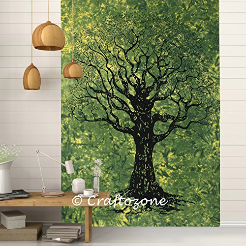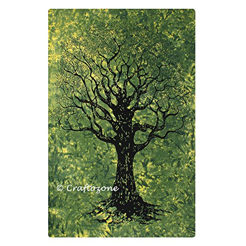 Tapestry Twin Green Tree Throw Wall Hanging Gypsy Bedspread ( 85x56 ) (Green Dry Tree)