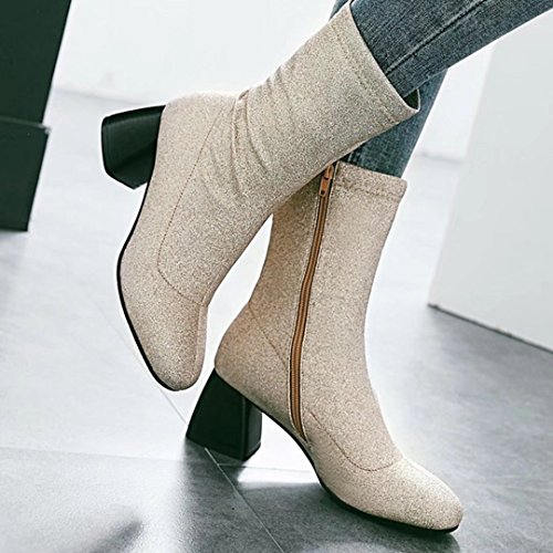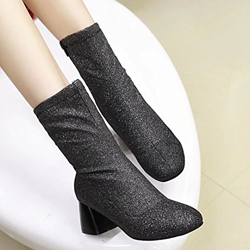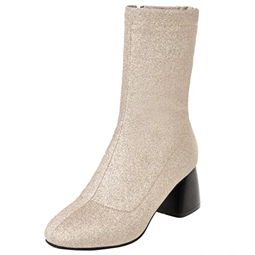 * Heel Height:6cm * Shaft: 18cm * Boots opening: 27cm * Platform Height: 0.5cm * Material: Glitter * Inner Material: Suede * Sole Material:Rubber * Color: Black, Red, Silver, Gold * Toe Type: Square Toe * Closure Type: Zipper * Heel Type: Block Heel * The package will be delivered to you about 7-12 business days. * Please measure the sizes of your feet before you buy this item. If your foot is slightly wider or one of your toes is longer than usual, please choose the larger size. * Q1: What can I do if I have any problems? * A1: Please send email to tell us your problems first,we will reply you in 12 hours(except holiday) and try to find the best solutions,thanks for your trust! * Q2: What can I do if the products have problems? * A2: Please send us email with the problem products picture,which can help us to solve the problem in time! * AIYOUMEI commits to the shoes' design, craftsmanship have a unique study to the Excellent quality of products and timely courtesy of customer service experience, adhering to the customer is God's philosophy.Our product main conclud boots, military style, espadrilles, flat, lace-ups, loafers panties, High heels, plateau, casuals, dress shoes, oxfords and so on.If there are any problems, please feel free to contact us at any time, we are always here to help you. 0 |