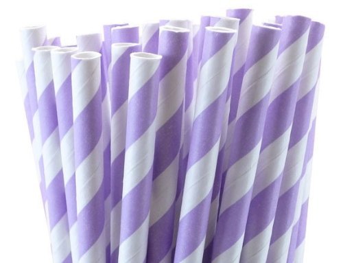 -. Title : 1 X 25 Paper Drinking Straws Lavender Purple Stripes 7.75" Retro Vintage Style Durable