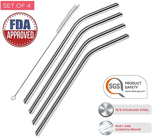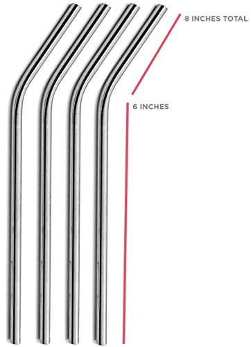 Stainless Steel Drinking Straws: Bent-Set of 4 straws + 1 free cleaning brush. Certified by FDA and SGS! Fits in Yeti and RTIC 20oz tumblers. Reusable 8.5" long...