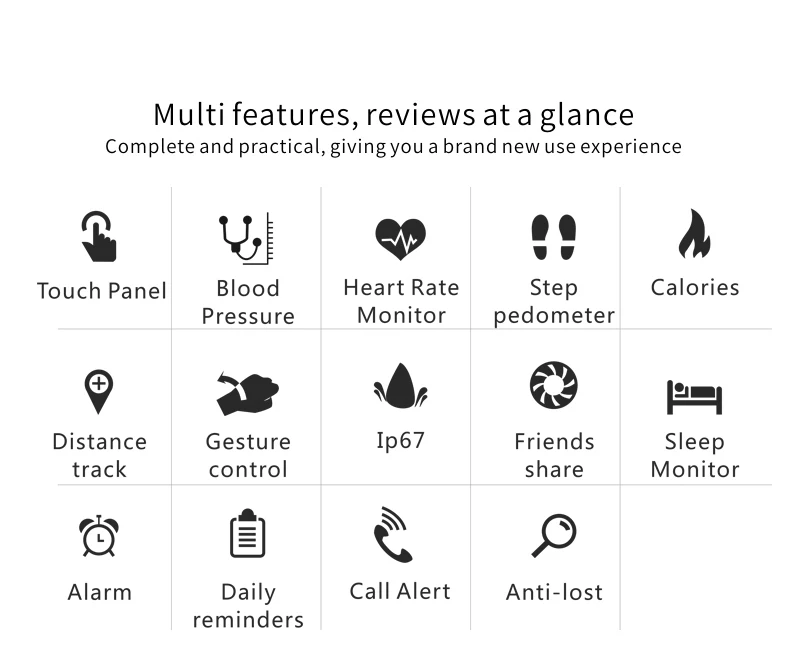 Function:Passometer,Sleep Tracker,Power Reserve,Push Message,Heart Rate Tracker,Alarm Clock,Remote Control,Month,Fitness Tracker,Message Reminder,Week,Call Reminder