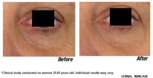 What it is: Go beyond stopping the clock - reverse it and recapture a more youthful appearance with this multi-tasking eye gel designed to lift the eye area, reduce the appearance of wrinkles, fights dark circles and provides eye bags treatment by targeting fatty deposits under the skin, crows feet and puffy eyes. This eye gel is formulated with Vernal's AT5 renewal complex to help promote skin's natural renewal and protection processes while a patented antioxidant repair complex helps provide powerful antioxidant protection.