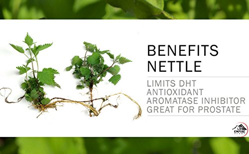 -. Feature : STINGING NETTLE (URTICA DIOICA): Can multiply hormone effectiveness / NATURAL AROMATASE INHIBITOR: Nettle root binds to sex hormone binding globulin (SHBG); limits DHT / ANTI-INFLAMMATORY AND ANTIOXIDANT PROPERTIES: Supports prostate health; shown to have positive cardiovascular effects / HOT WATER EXTRACT FROM NETTLE ROOTS: Wildcrafted in the Anhui and Sichuan provinces of China / GLUTEN FREE, PALEO, VEGAN: No GMO's, fillers, preservatives, added sugar, artificial flavorings or colorings
