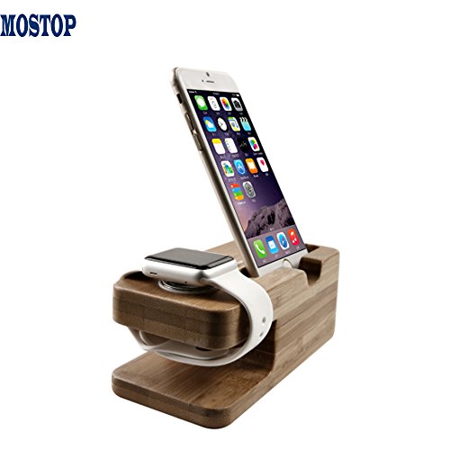 -. Binding : Wireless Phone Accessory -. Brand : MOSTOP -. EAN : 0789464203829 -. Feature : Docking station holder special designed for Apple Watch and iPhone 5/5S/5C/6/6 plus (Charger, Apple Watch and iPhone are not included). / Apple Watch's inductive charger slots comfortably in the dock, It can hold the watch stable and provides comfortable viewing. / Simple and elegant, well fit into home or office environment. / Light weight, carry easy; Safe and easy operation. / Special cutout for the charging cable; A great place to keep your Apple Watch clean and safe at night while charging. -. IsEligibleForTradeIn : 1 -. Label : MOSTOP -. Manufacturer : MOSTOP -. PackageQuantity : 1 -. ProductGroup : Wireless -. ProductTypeName : WIRELESS_ACCESSORY -. Publisher : MOSTOP -. Studio : MOSTOP -. Title : MOSTOP(TM) Wood Charge Docking Station Holder Cradle for Apple Watch & iPhone - Fits iPhone Models: 5 / 5S / 5C / 6 / 6 plus and both 42mm & 38mm sizes of 2015 Watch Models -. UPC : 789464203829