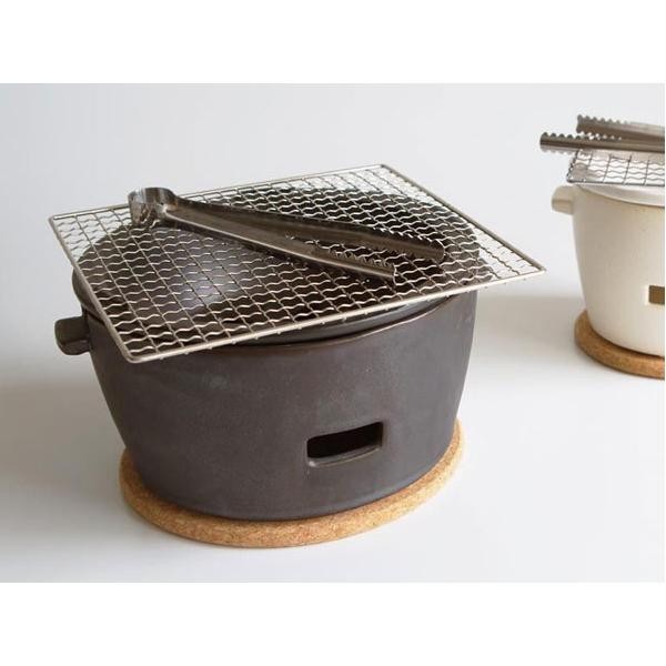 | コンロ内に水を入れて、その上に炭が入った五徳を乗せるため、熱がテーブルに伝わりにくく、シンプルでコンパクトな炭焼きコンロです! |