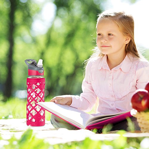 - PROTECTIVE SILICONE SLEEVE: The brilliant design of the silicone sleeve makes this bottle not only aesthetically pleasing, but also protects it from bumps, drops and breaks. Each silicone sleeve is reinforced and includes a padded base to withstand tumbles or drops in the gym, on the trail and beyond – makes a great camping water bottle as well!