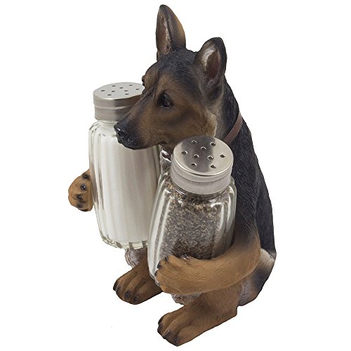 German Shepherd Police Dog Salt and Pepper Shaker Set with Decorative Display Stand Holder Canine Figurine for Kitchen Decor Table Centerpieces As K-9 Gifts for Policemen by Home-n-Gifts
